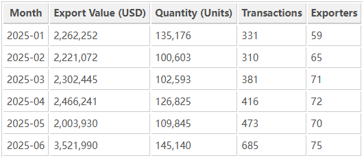 The first half of 2025 presented a stable upward trajectory. Vietnam’s faucet exports fluctuated around USD 2.2–3.5 million per month, with June peaking at USD 3.52 million, the highest in the six-month period. The following table summarizes monthly trends: