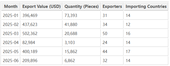 Despite these natural fluctuations, the sector maintained export values above USD 200,000 in most months—a sign of strong baseline demand from recurring clients.