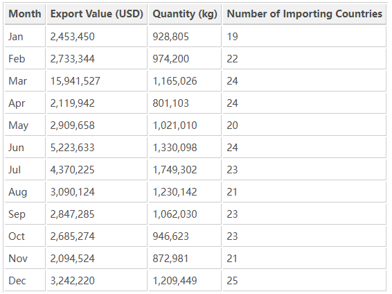 HUA SUI TRADING CO., LTD.– a consistent regional distributor covering Hong Kong and Taiwan, purchasing over 6,000 kg valued at 115,911 USD.