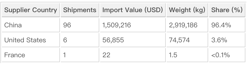 Import Concentration: The top 5 importers accounted for roughly 65% of total import value, reflecting a semi-concentrated market where long-term partnerships determine pricing and logistics efficiency.