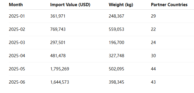 In the first half of 2025, Colombia’s imports of screws (HS7318159000, “TORNILLOS”) — key components in construction, automotive, and machinery industries — continued to expand. According to NBD DATA
